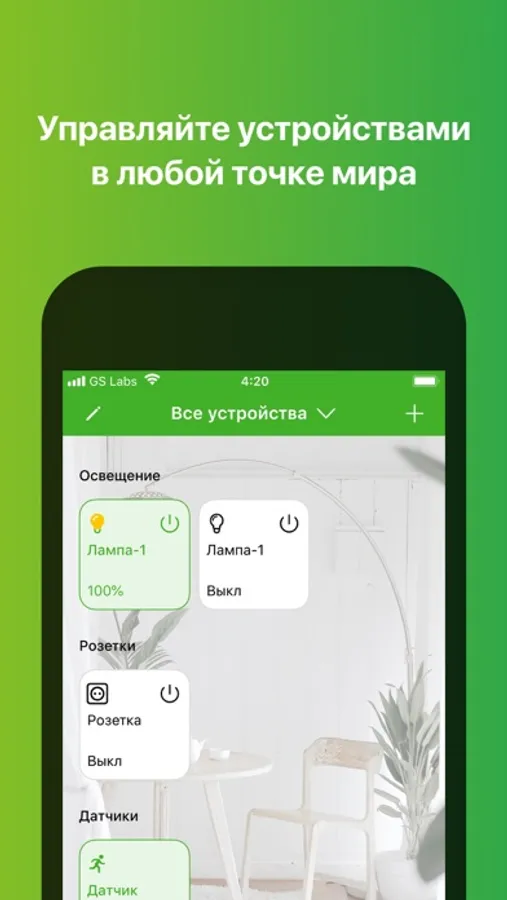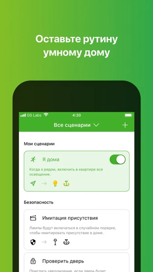 Приложение умеет управлять системой “Умный дом” на базе контроллера производства GS из любой точки мира. Оно поддерживает умные лампы, розетки, сирены, датчики движения, протечки, открытия, датчики газа метан/пропан, датчики дыма, температуры и влажности. В приложении можно создавать различные сценарии, ставить дом в режим охраны и получать различные уведомления от датчиков.