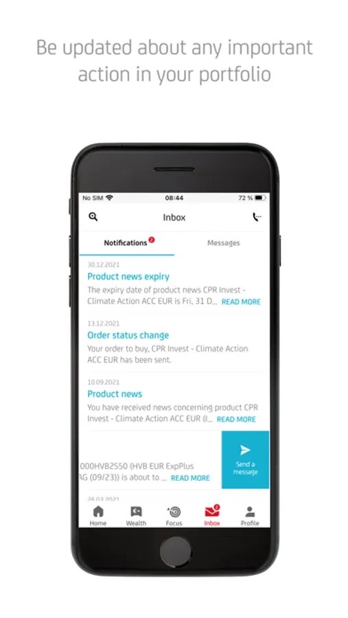 Get notified about latest events happening in your portfolio. Do not miss any product news from your banker or upcoming maturity of your products. Swipe the notification left and right to mark it as read/unread, or to follow up in the conversation with your banker.