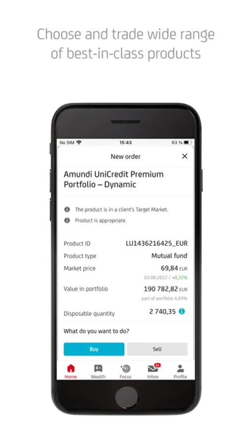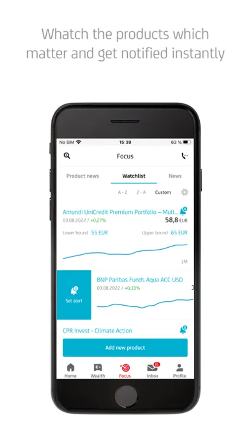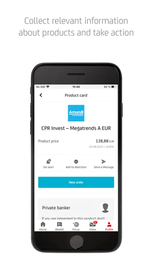 Possibility to get the latest investment ideas from your banker in line with your profile. If you would like to find out more you can start conversation with your banker, check the videos and other supporting materials or save the idea for later. Once you are convinced that the product is the right one for your portfolio, you can just in few clicks execute your investment in fully digital way. If you have your own idea, just search among available products, and proceed with the order.