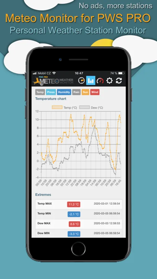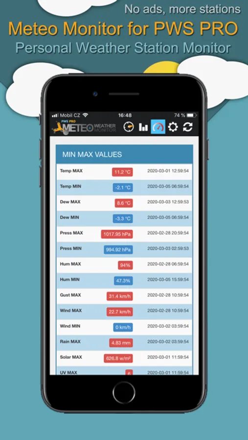 - MIN/MAX for temperature, dew point, humidity, pressure