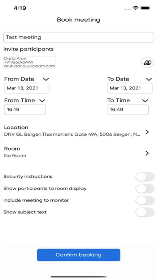VIP smart Building app -Book a meeting room for a meeting with or without parking allotment and invite your participants in just a few taps on your phone. If you just want to invite someone without booking a room it is even simpler. In both cases, the invitees will be pre-registered. They will receive an invitation by SMS and only need to scan their submitted QR code to get a visit certificate and possibly also a parking permit. SMS invitation will give meet point direction too.