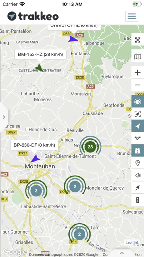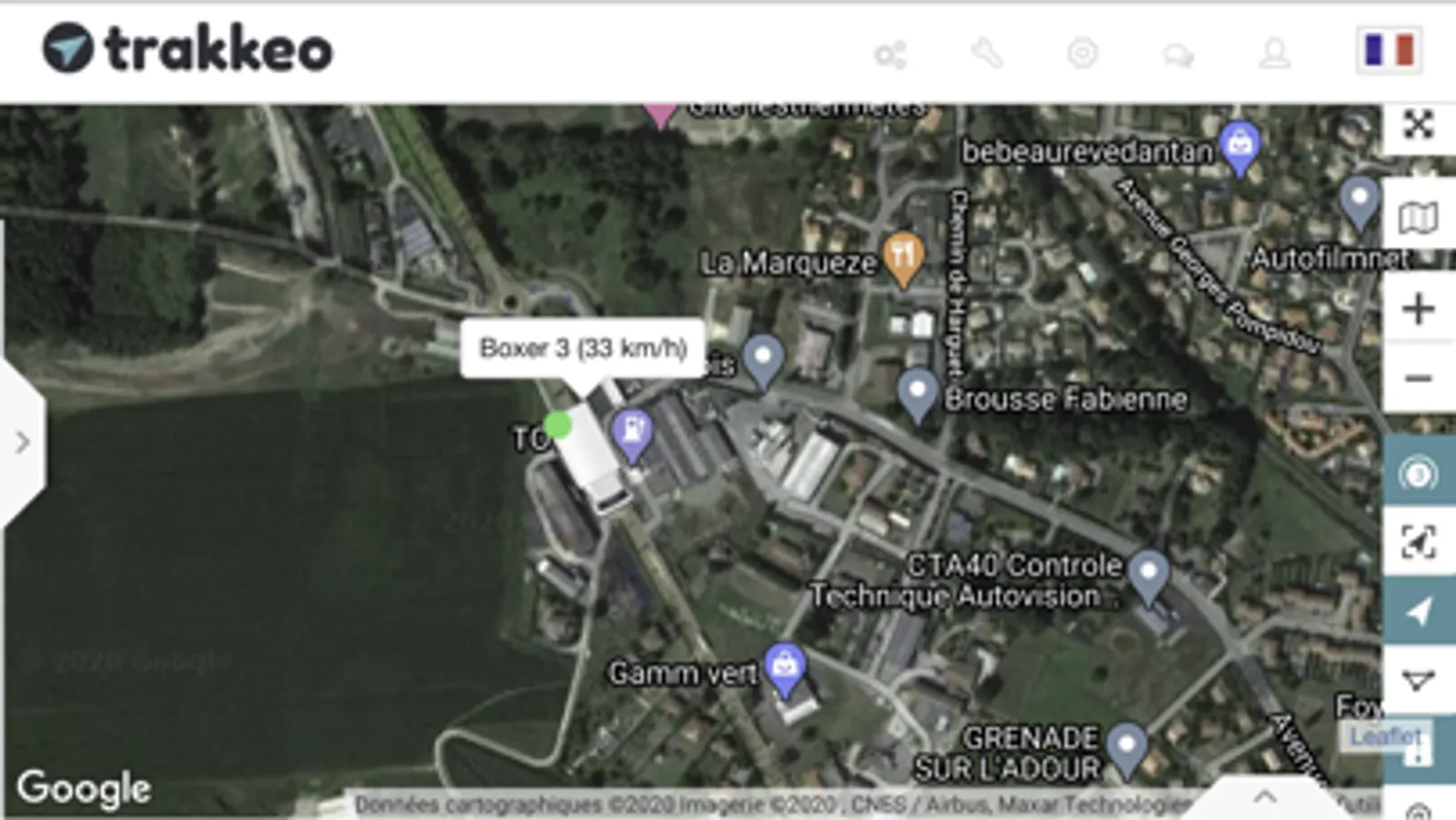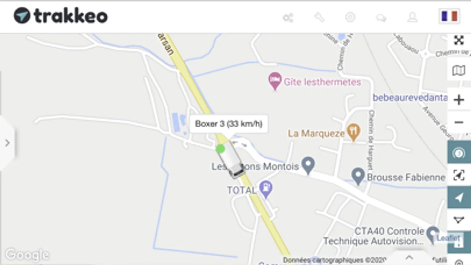 Visualiser la position de vos véhicules, actualisée toutes les 5 secondes, sur les données cartographiques de Google Maps® et Google StreetView®