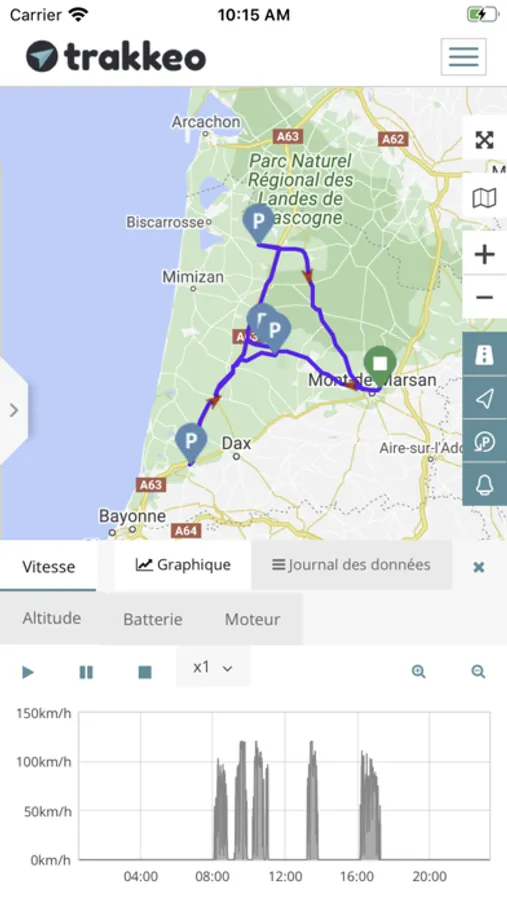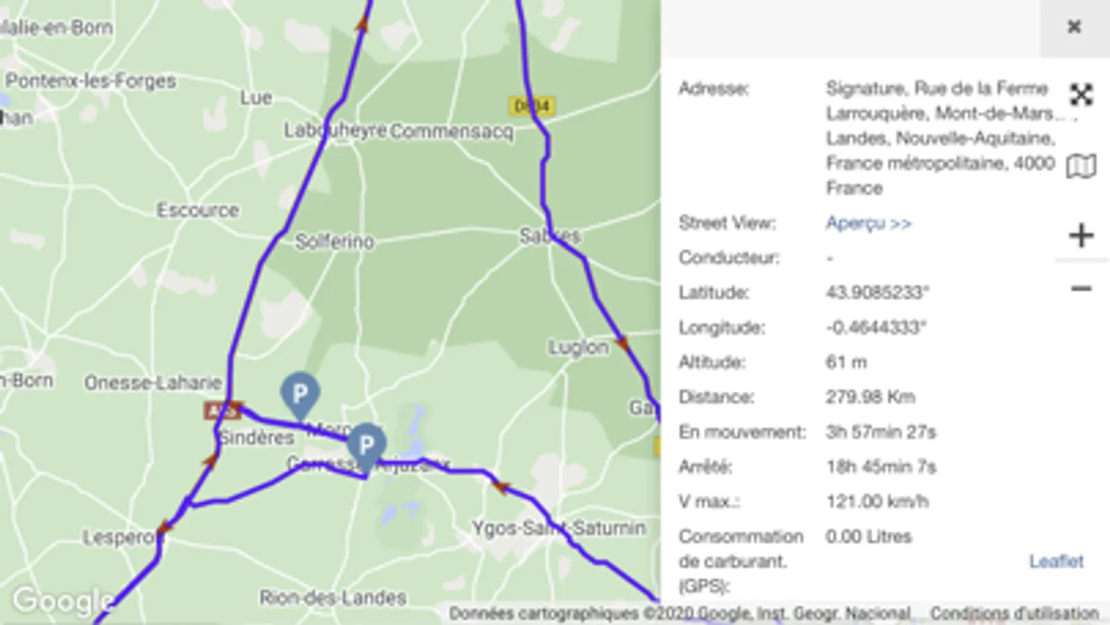 Visualiser en 2 clics les trajets et arrêts de vos véhicules sur une période de 3 mois. Consulter les adresses et les statistiques de chaque trajet.