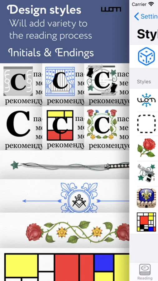 ShortBook² focuses on the layout process, allowing the user to control virtually all text placement options. Moreover, the program analyzes the text and places decorative elements in various places, which not only decorate the book and bring their atmosphere into it, but also simplify the reading process.