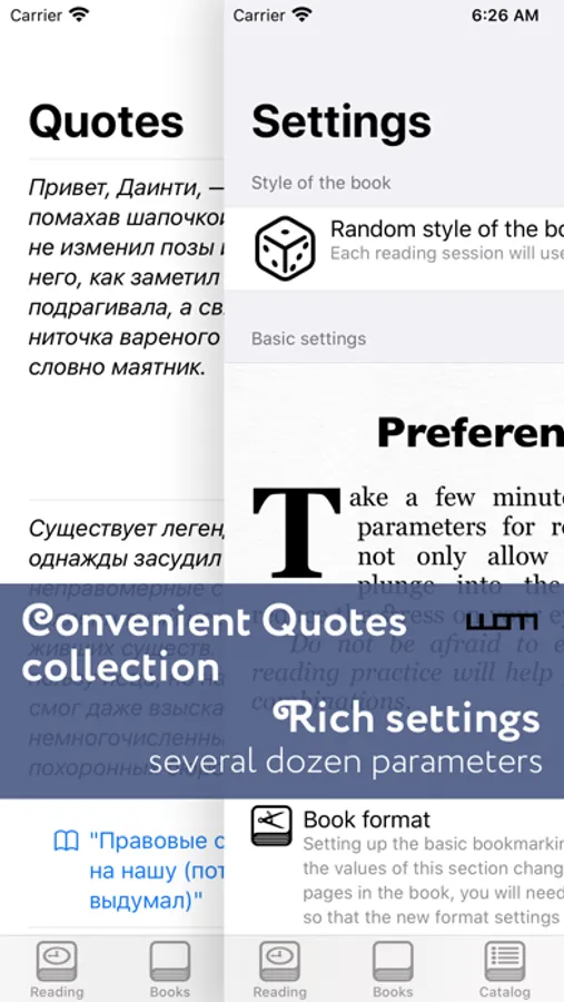 Thus, in ShortBook², even "picture-free" books look attractive and do not tire with the external monotony while reading, which not only increases reader comfort, but also reduces eye fatigue from the reading process.