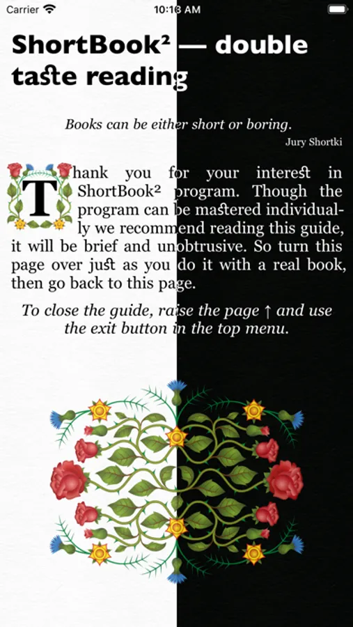 Reading books on portable devices is always a compromise between comfort of reading and text availability. ShortBook² offers an original way of solving this problem with its careful approach to text makeup on the limited screen area of iPhone or iPad. A lot of experiments with various text compositions and interface layouts have jelled the unique match for convenient reading. If you need to read for a long time, with comfort and without any considerable damage to the sight take advantage of the ShortBook² program — a high-end reader.