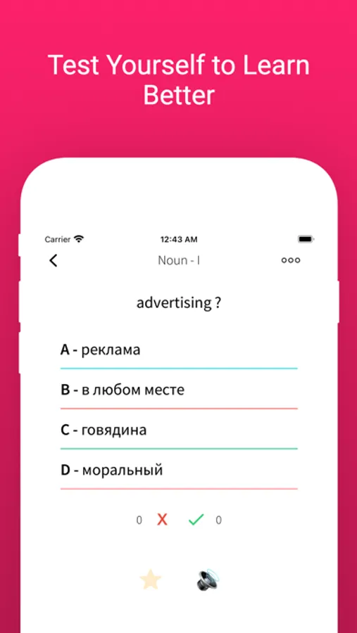 Flashcards: Dive into an interactive learning experience with beautifully designed flashcards. Master the pronunciation, spelling, and meaning of English and Russian words effortlessly. Swipe through cards and reinforce your memory through visual cues. we even include 2 example sentences to help you learn the words in context.