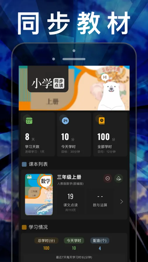 ·学习成就:图表统计学习情况,孩子的学习情况、训练成果一目了然。