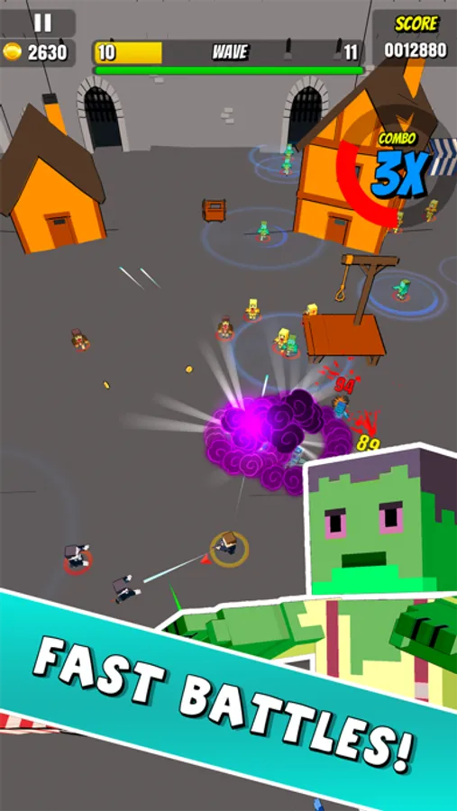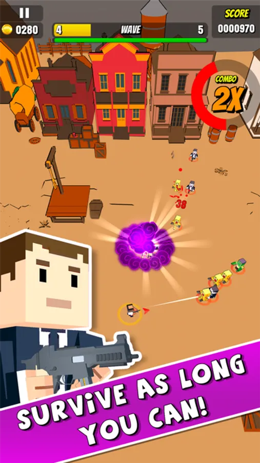 Survive various waves of zombies with weapons and improvements that unlock during the game.