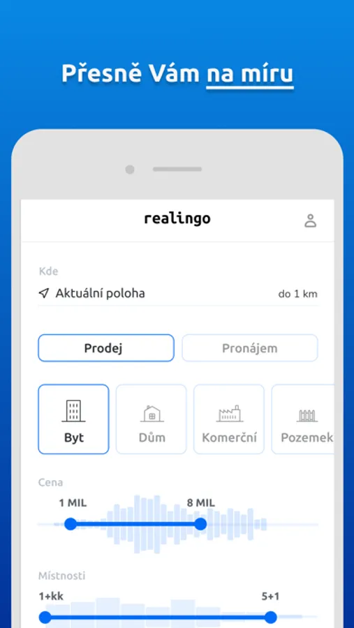 Všechny reality na jednom místě. Realingo zobrazuje inzeráty ze všech velkých českých realitních serverů (idnes, hyperreality, bazoš aj.) v jedné aplikaci. Prodeje i pronájmy, byty, domy, chaty, chalupy i pozemky. Nastavte svá kritéria a vybírejte z více než 120.000 realit dostupných v ČR.