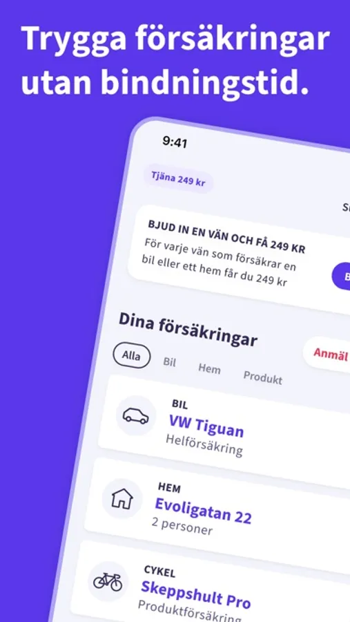 evoli erbjuder nya smarta och trygga försäkringar utan bindningstid för att göra det billigare och enklare för dig som kund om olyckan är framme!
