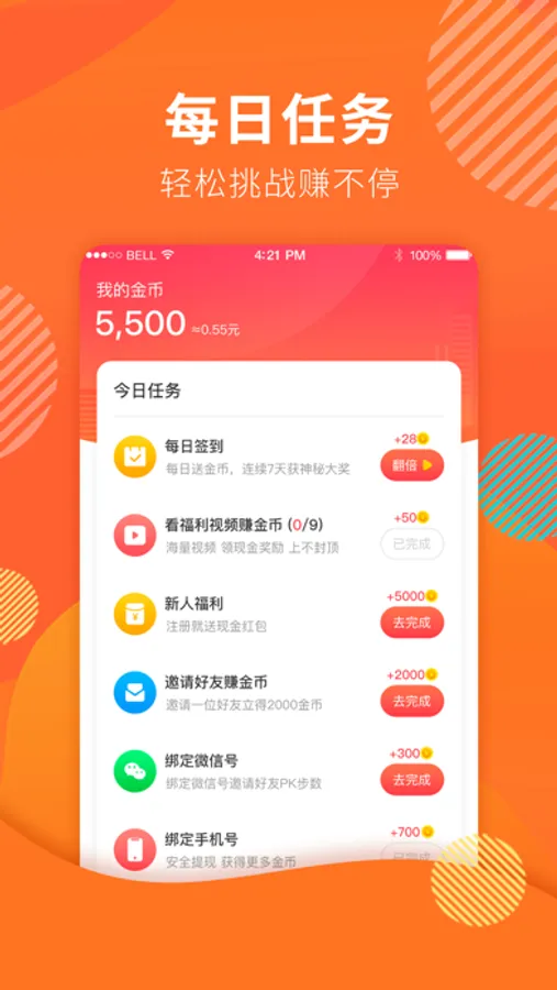 完成每日打卡任务,赚取更多收益,养成健康运动习惯
