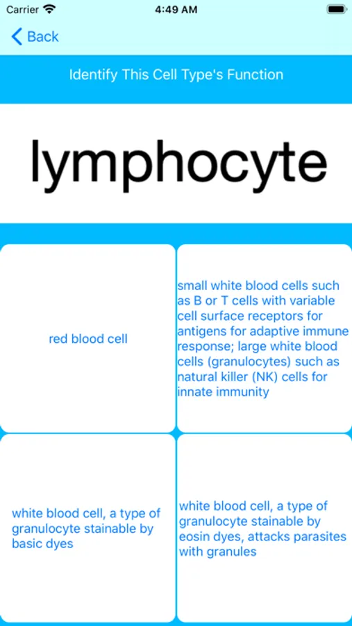 Immune Cells Tutor is an app to help you to recognize the major cell types seen under the microscope involved in the immune system. Further, it will teach you which cell types descend from each other in the immune response. There is also a Review section to study and compare the different immune cell images, their names and their functions. This app is a helpful study aid for immunology and histology classes.