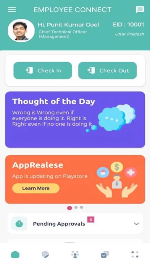 The Home page showcases Employee’s details like Employee-Id, Date of Birth, Date of Joining, Designation, Department etc. The Home page has widgets that help to set reminders, birthdays, alerts and departmental announcements.