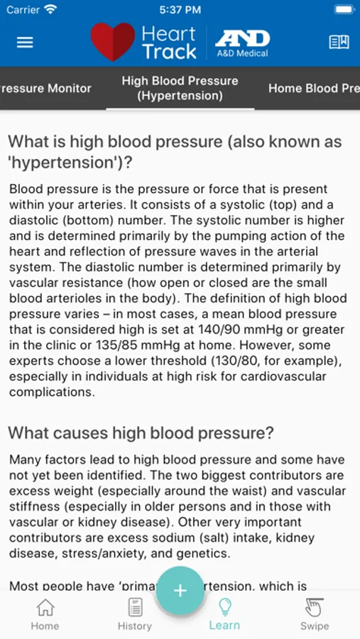 MEDICAL DISCLAIMER: The Heart Track app is not intended for the diagnosis of or screening for hypertension. Users should be aware that the Heart Track app is an information management service to enable the analysis of blood pressure data and is not intended to be a substitute for the advice of a health care professional. Individuals should always consult their doctor or other qualified health care professional with any questions they may have regarding a medical condition, including any queries or concerns about blood pressure management. You should never disregard professional medical advice or delay in seeking it because of information transmitted to or contained in your Heart Track app.