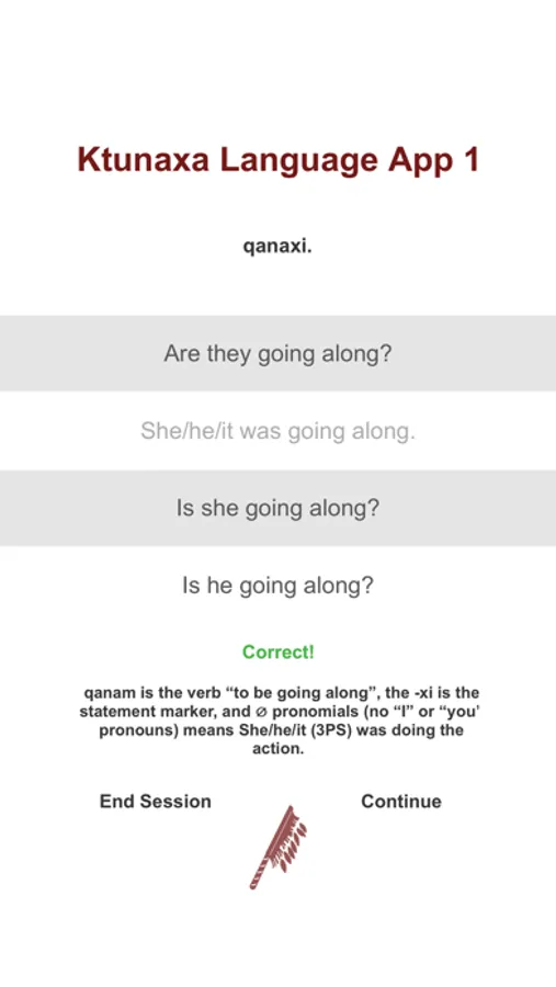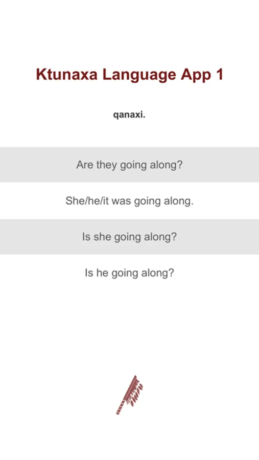 This in an app to help Ktunaxa learners recognize basic grammar patterns. The app utilizes contemporary Second Language Acquisition feedback to help learners notice "gaps" in their Ktunaxa language knowledge.