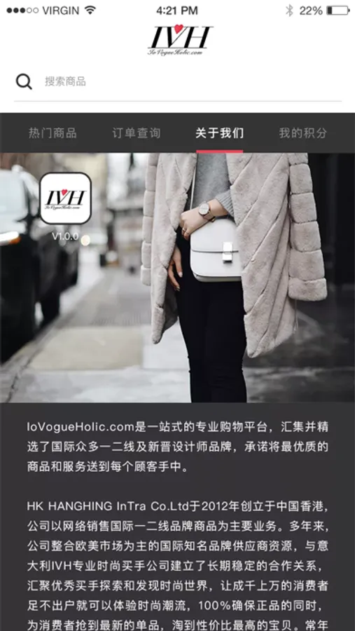 IoVogueHolic是一站式的专业购物平台,汇集并精选了国际众多一二线及新晋设计师品牌,承诺将最优质的商品和服务送到每个顾客手中。多年来,公司整合欧美市场为主的国际知名品牌供应商资源,与意大利IVH专业时尚买手公司建立了长期稳定的合作关系,汇聚优秀买手探索和发现时尚世界,让成千上万的消费者足不出户就可以体验时尚潮流,100%确保正品的同时,为消费者抢到最新的单品,淘到性价比最高的宝贝。