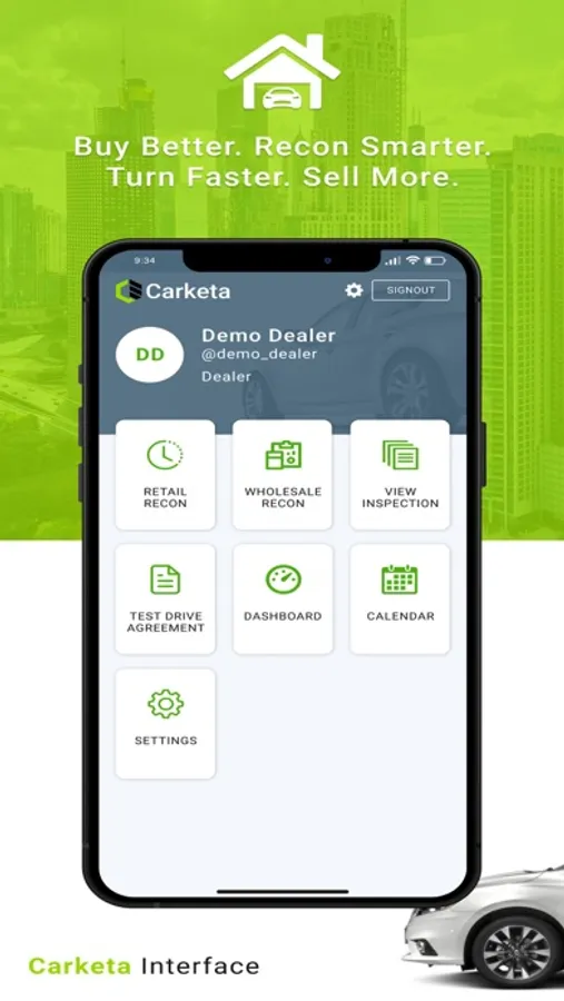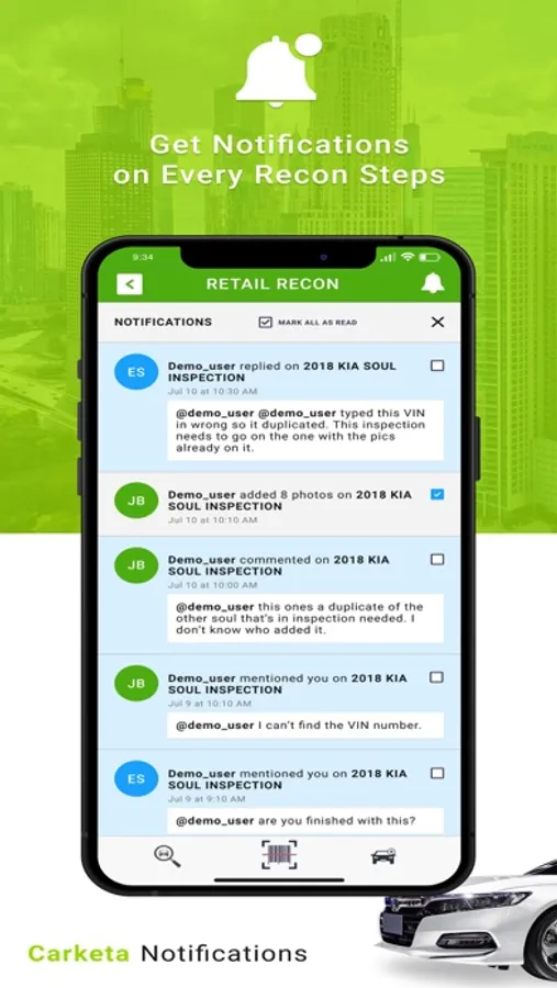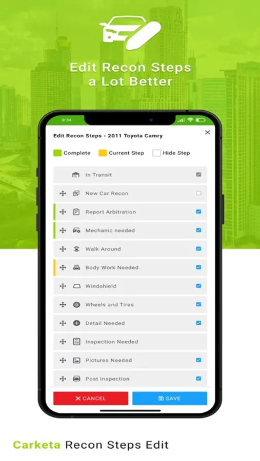 The Carketa app grants quick and easy access to your dealership’s automated reconditioning tool and inspection reports. With the Carketa app, you will have the ability to not only have a faster time to move vehicles to market, but improve employee accountability, track productivity with each step, identify where vehicles are being held from being completed, generate reports and graphs, and reduce holding costs. With customizable dashboards, reports, and user accounts the user interface is unprecedented in the used car sales industry. Keep better connected to your team and the inspection stations by having it all in the palm of your hand.