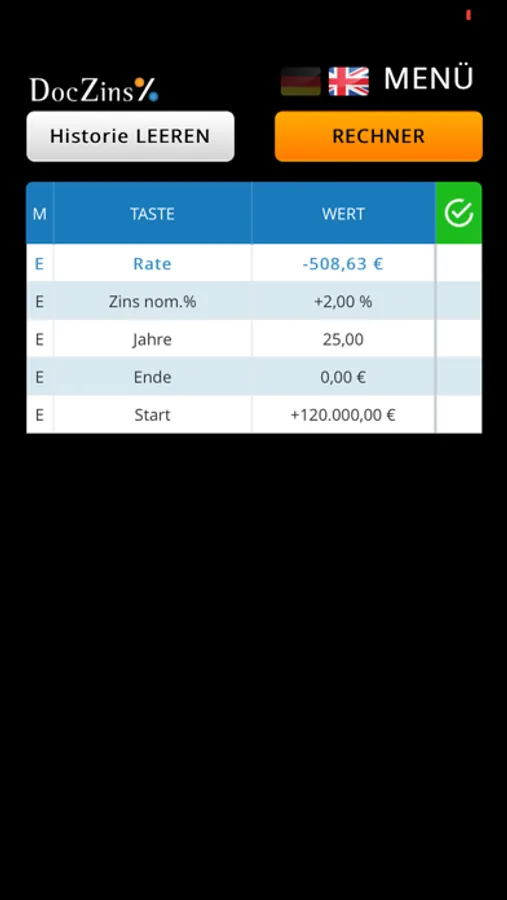Dein Finanzrechner für den erfolgreichen Einstieg für deine Erfolgskompetenz. Damit kannst Du alle Inhalte der finteachworld-Online-Kurse www.finteachakademie.com und www.finteachschool.com berechnen: Sparpläne, Einmalanlagen, Finanzierungen, Ratenkredite, Leasing, Rentenberechnungen, Kalkulation von Laufzeiten. Dein Nutzen: Du trainierst mit DocZins Basis die wesentlichen, für den Alltag notwendigen Berechnungen. Für einfach bessere Geldentscheidungen. Du kannst zudem Berater auf ihre Kompetenz prüfen.