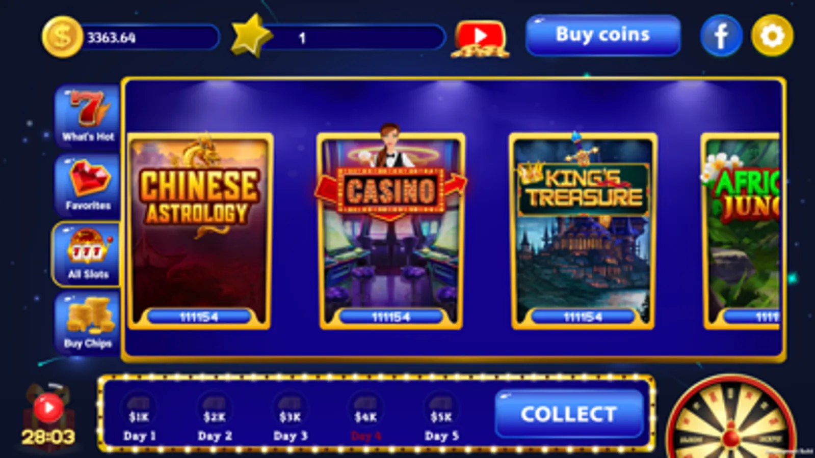 With titles like Classic 777, Fruits Mania, Egypt Treasure, Pirates hideout, Chinese Astrology, Casino, King’s treasure, African jungle, Diamond mania, Farm treasure. You’ll have all the lights and sounds of Vegas in the palm of your hand.
