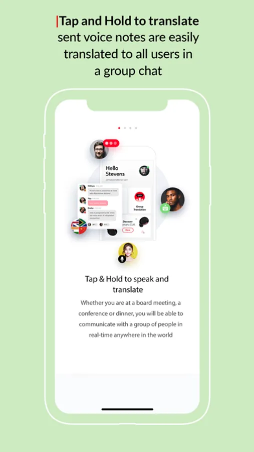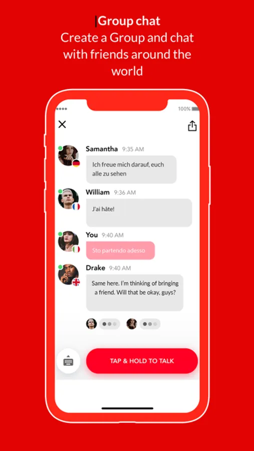 MyJuno can translate multi-lingual text and voice chat between 2 people and up to 300 people in one group. The 30+ languages include for instance English, Chinese, French, German, Spanish, Italian, Arabic, Russian. In total that’s more than 660 cross-language possibilities at the tap of a finger!