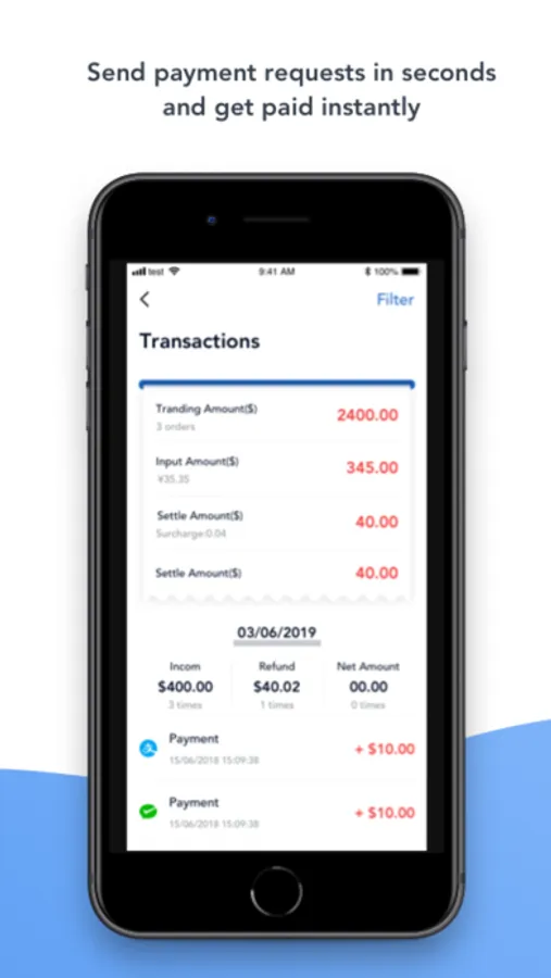 Access your account information, settlement reports and data analysis from your mobile. Receive confirmation of your transaction and settlements. Monitor your earnings wherever and whenever you want to.