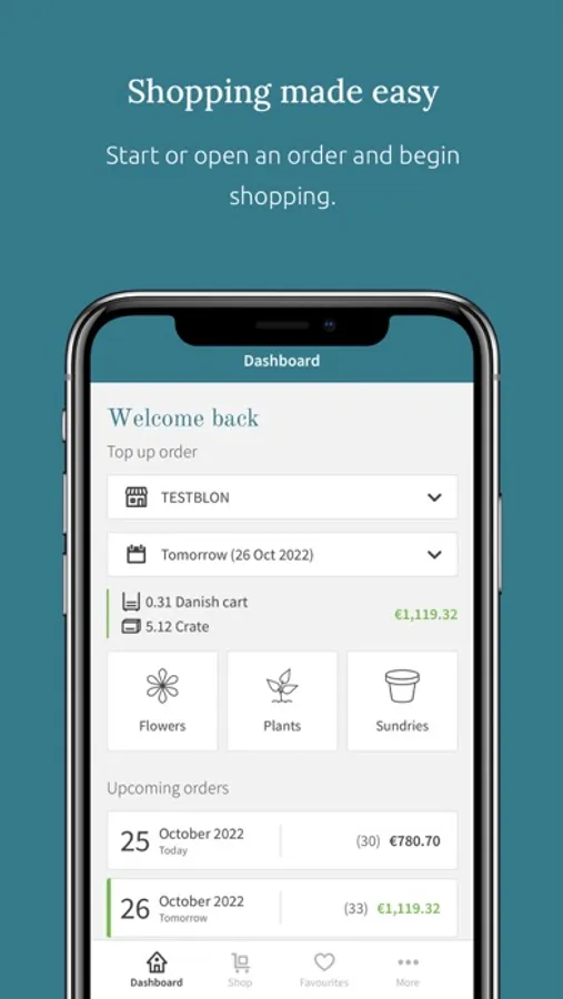 • View previous orders, repeat or create new orders