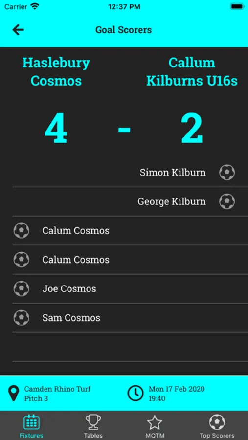 Playfiveaside Results App