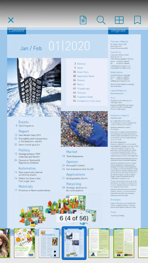 bioplastics MAGAZINE is the only independent trade magazine worldwide dedicated to bioplastics (i.e. plastics made from renewable resources and/or biodegradable/ compostable plastics). The print magazine + ePaper (this App) is being published 6 times a year.