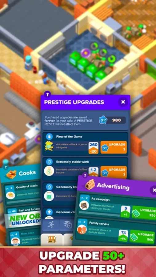 Earn money as you progress through the improvement of your kitchen and then manage the expansion of your ownership!