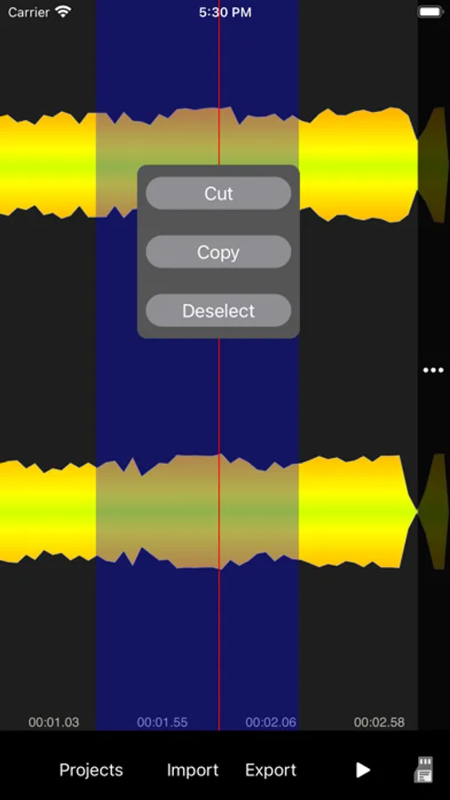 Wave Audio Editor is application for edit/cut/modify audio files from iCloud or music library or "Downloads" folder.