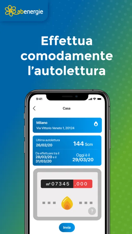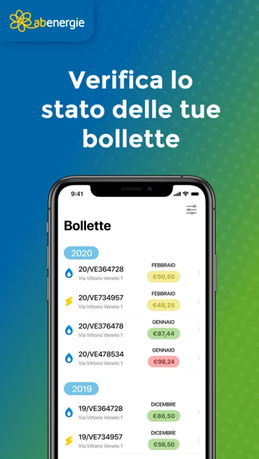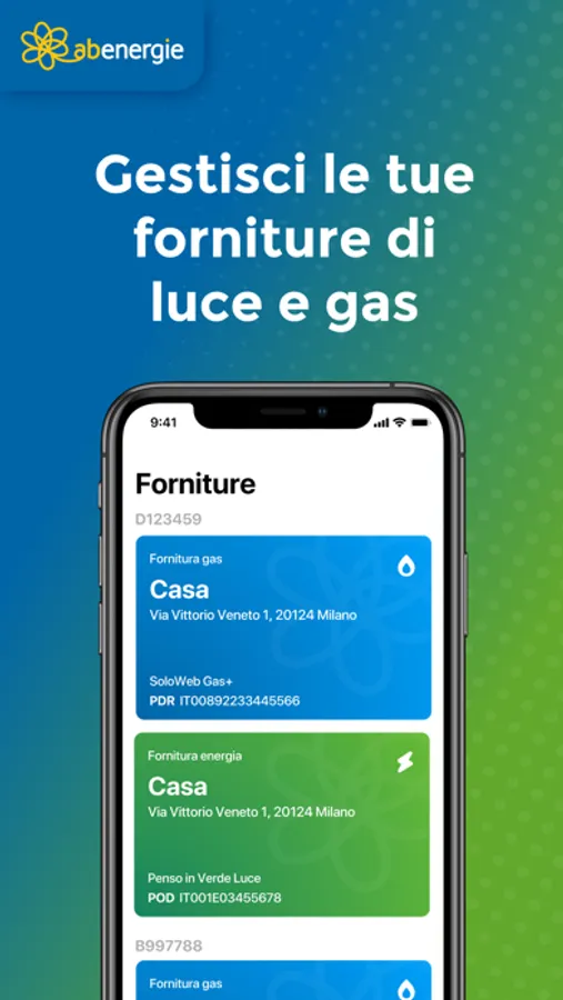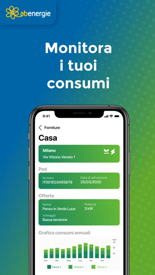 Con My ABenergie attivi e gestisci in tutta comodità le tue forniture di luce e gas. Grazie all’app potrai utilizzare tutti i servizi relativi ai contratti di energia elettrica e gas con un semplice click!