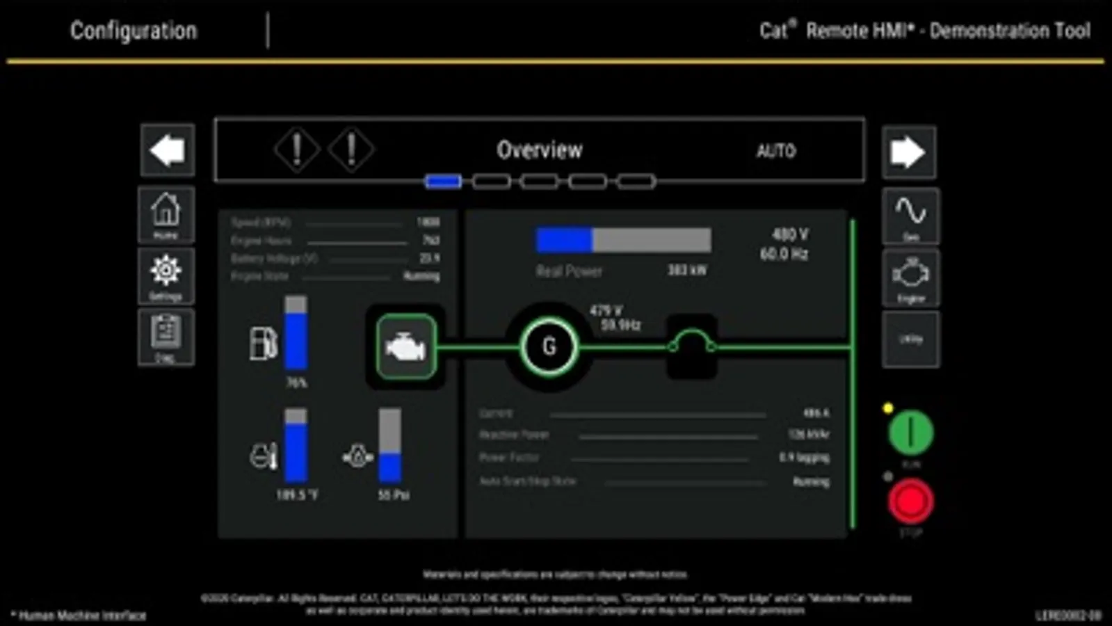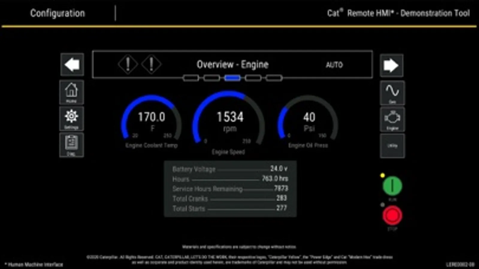 The remote HMI demonstrator has configurable inputs that use pre-programmed data to show how values appear on the display while the interactive graphic screen and icons demonstrate display navigation functionality.