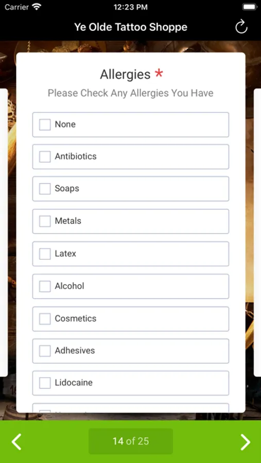 The Ye Olde Tattoo Shoppe application allows you to submit your release form securely from your own device!