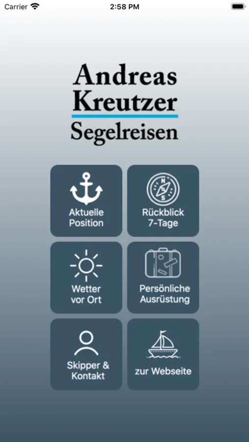 Hinter dem Button „Skipper & Kontakt“ bekommen Sie einen kurzen Einblick über den Reiseunternehmer und Skipper Andreas Kreutzer sowie die Möglichkeit Andreas per Knopfdruck über Telefon oder E-Mail persönlich zu erreichen.