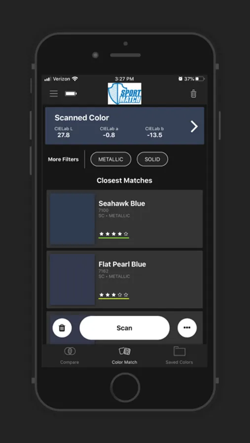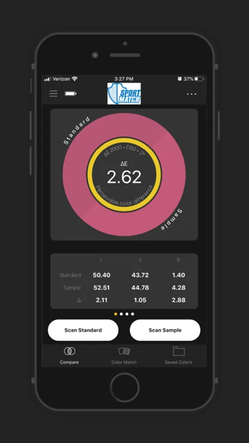 The Sportmatch app is a piece of software to help in color identification. Smaller than your cellphone, the Sportmatch colorimeter can be taken anywhere. Our team at SportCoat will work with you to identify the best color within the library for your program. With over 2,000 custom colors already engineered, we guarantee you will find an exact match to the specification of your organizations uniform, infrastructure, or any other project that requiring that team color. With Sportmatch software, everyone has ability to identify a color, compare to a sample, and inspect the data to ensure a perfect match!