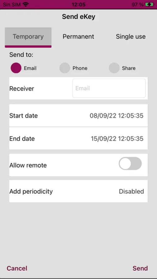 Envío de llaves electrónicas vía APP en cualquier lugar y momento.