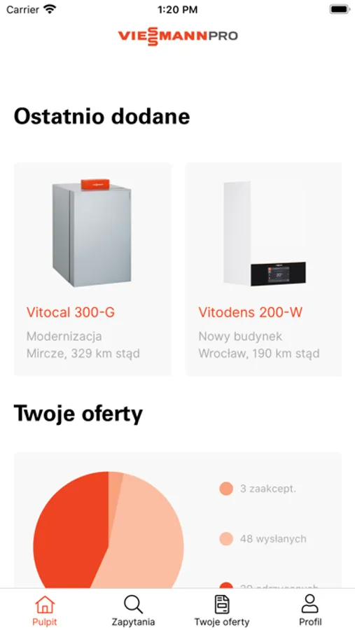 Twórz, przeglądaj i wysyłaj oferty do klientów w odpowiedzi na ich zapytania. Zarządzaj swoim kontem Viessmann PRO z poziomu aplikacji i przyspiesz pozyskiwanie zleceń i usług!
