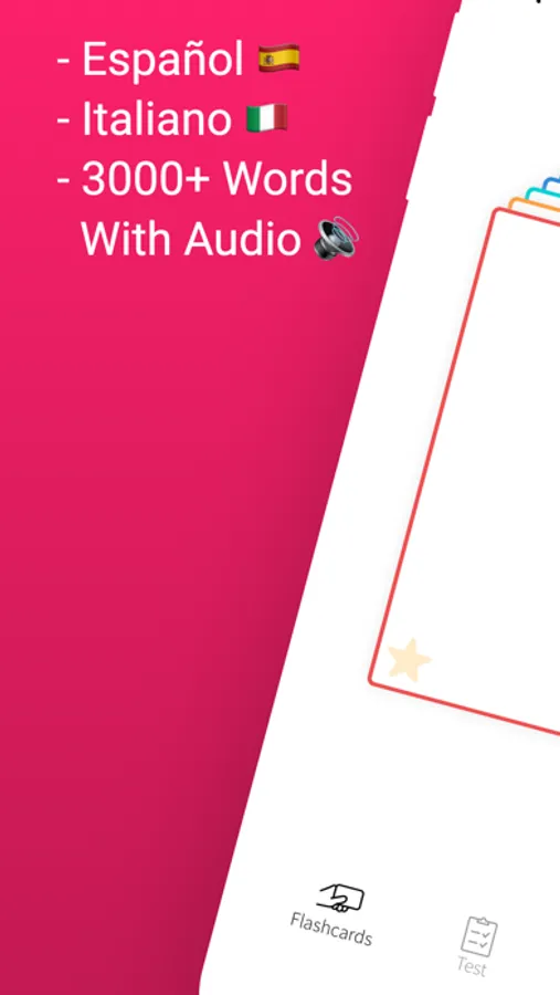 Expand your language skills with this app, the ultimate Spanish-Italian vocabulary learning app. Unlock the power of 3000 commonly used words through an immersive learning experience designed to boost your language proficiency. Whether you're a beginner or an advanced learner, our app offers three dynamic features to accelerate your progress: Flashcards, Word Tests, and the exciting Match Game. Start your language journey today and become a fluent communicator in both Spanish and Italian!"