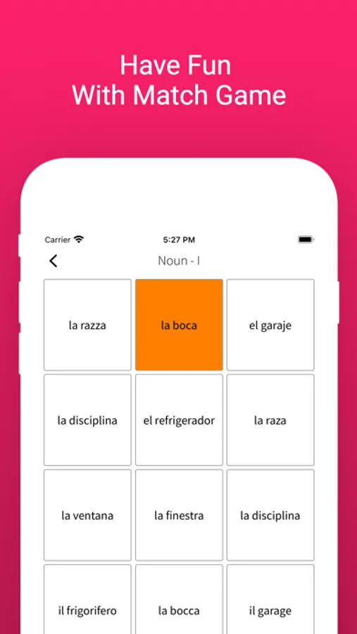 Match Game: Play an addictive matching game to strengthen your word recognition skills. Connect Spanish words with their Italian translations. Sharpen your memory while having fun!