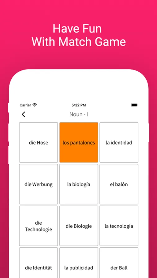 Match Game: Play an addictive matching game to strengthen your word recognition skills. Connect Spanish words with their German translations. Sharpen your memory while having fun!