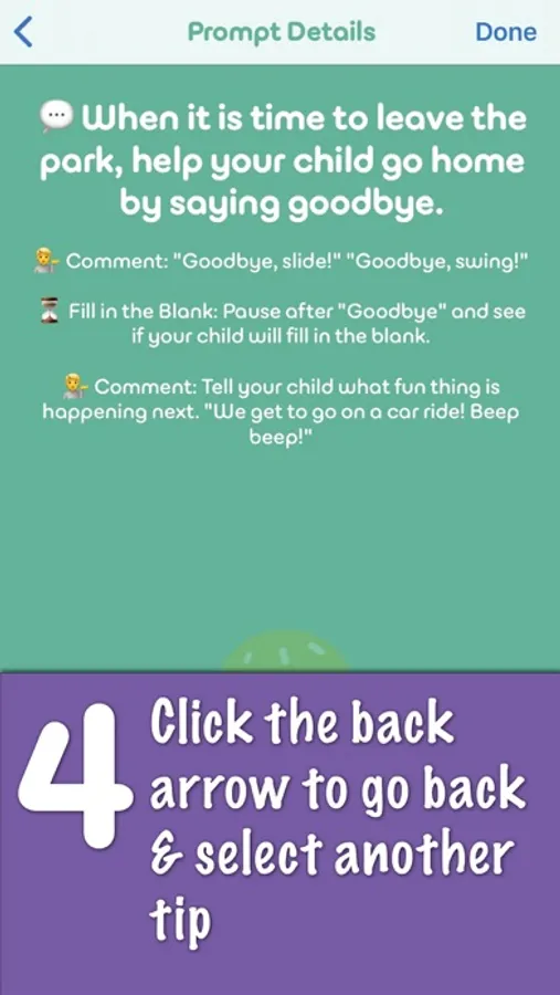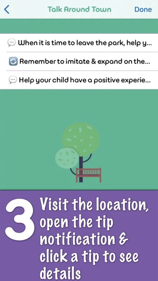 Upon visiting a locations you set, you’ll receive a notification that you have tips available. Click on the notification, and three tips appear on for that outing. Click on each tip to see examples of how to use the tip in your current location.