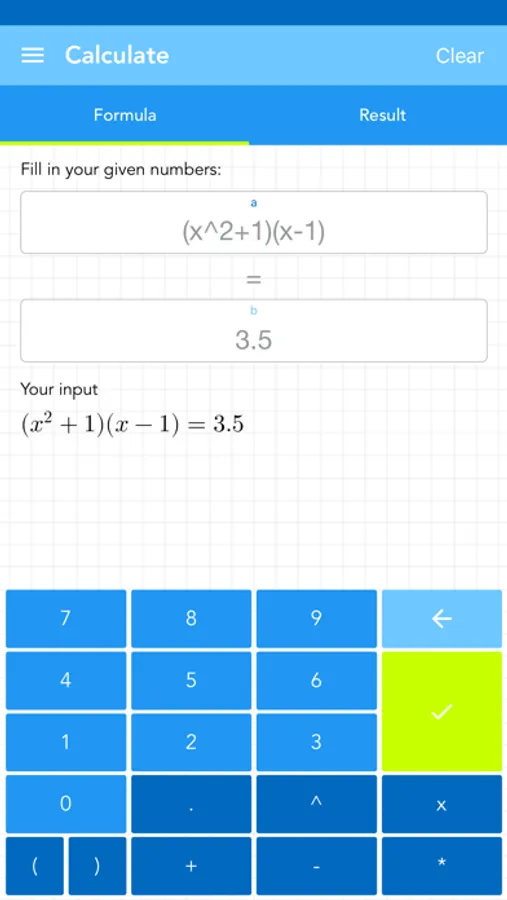 Find x of an algebraic equation in less than a second. You have both sides of an equation where you can enter your algebraic terms. After entering the algebraic terms this app shows every step how to transform your complicated equation into a very simple one. In the end a numeric algorithm solves the simplified equation and provides the solution for x. It finds x (or the zeros of a function).