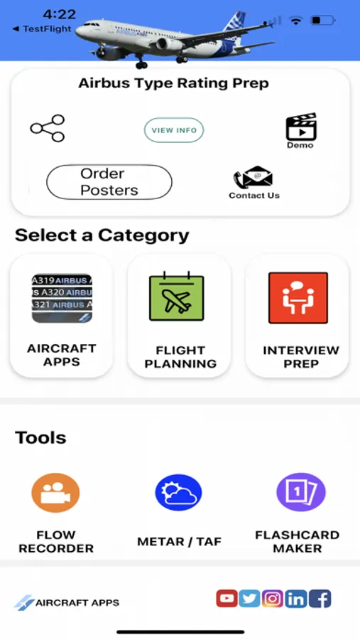 STEP 2: After AIRCRAFT APPS has downloaded to your device, tap Type Rating Prep on the Menu Screen and search through the in-app purchases for your aircraft.