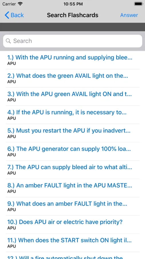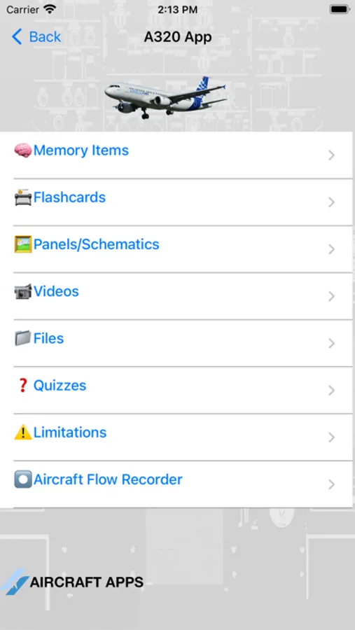 •Choose any aircraft system from a drop down menu and easily study technical questions about the airplane.