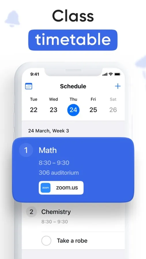 - Notification in the morning with a reminder of today's classes