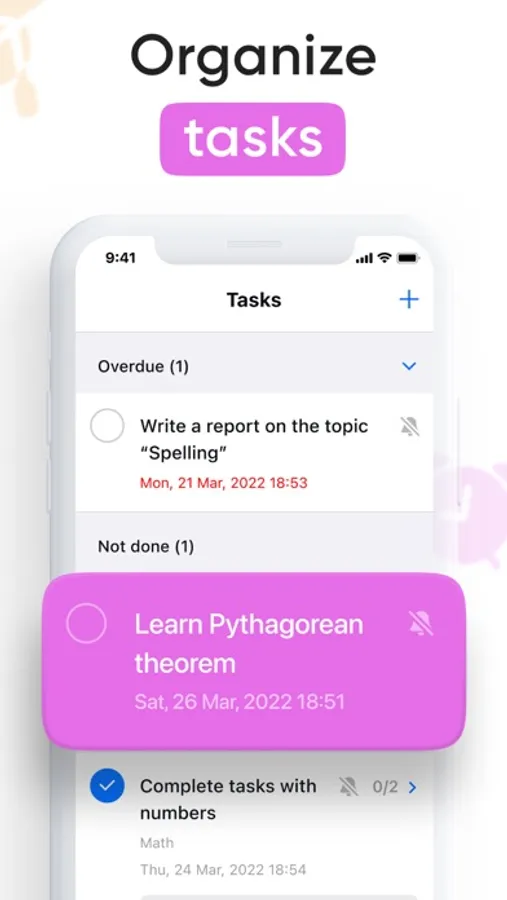 - Notifications that won't let you forget about homework