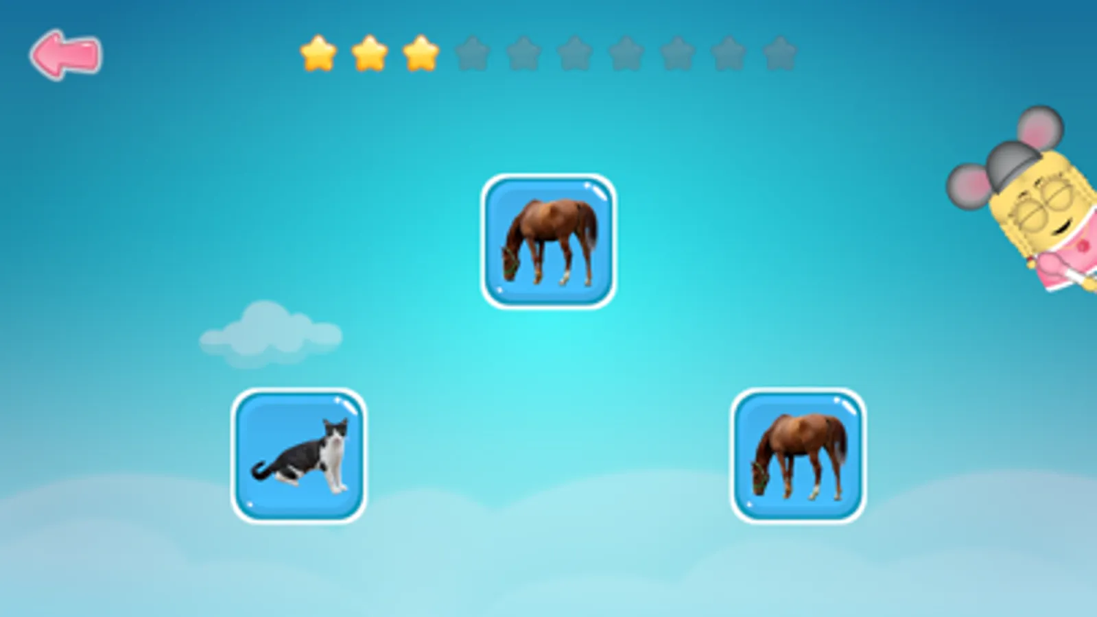 To make it a little extra appealing to children, we've added a system where you collect stars for each correct answer. These stars can be used to unlock outfits for a character who follows the child during the game.