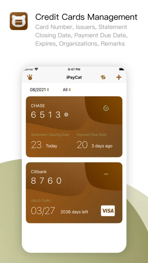 iPayCat is a Professional Credit Card Management Utility, Dedicated to Enhancing the Experience of Using Credit Cards for Customers Around the World, and Enjoying a More Security Sense and Good Life.