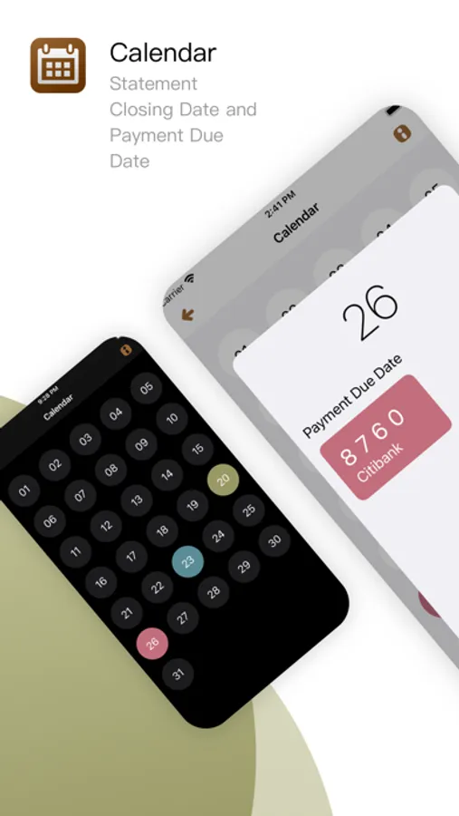 @ Calendar: Statement Closing Date and Payment Due Date are Clear at a Glance.